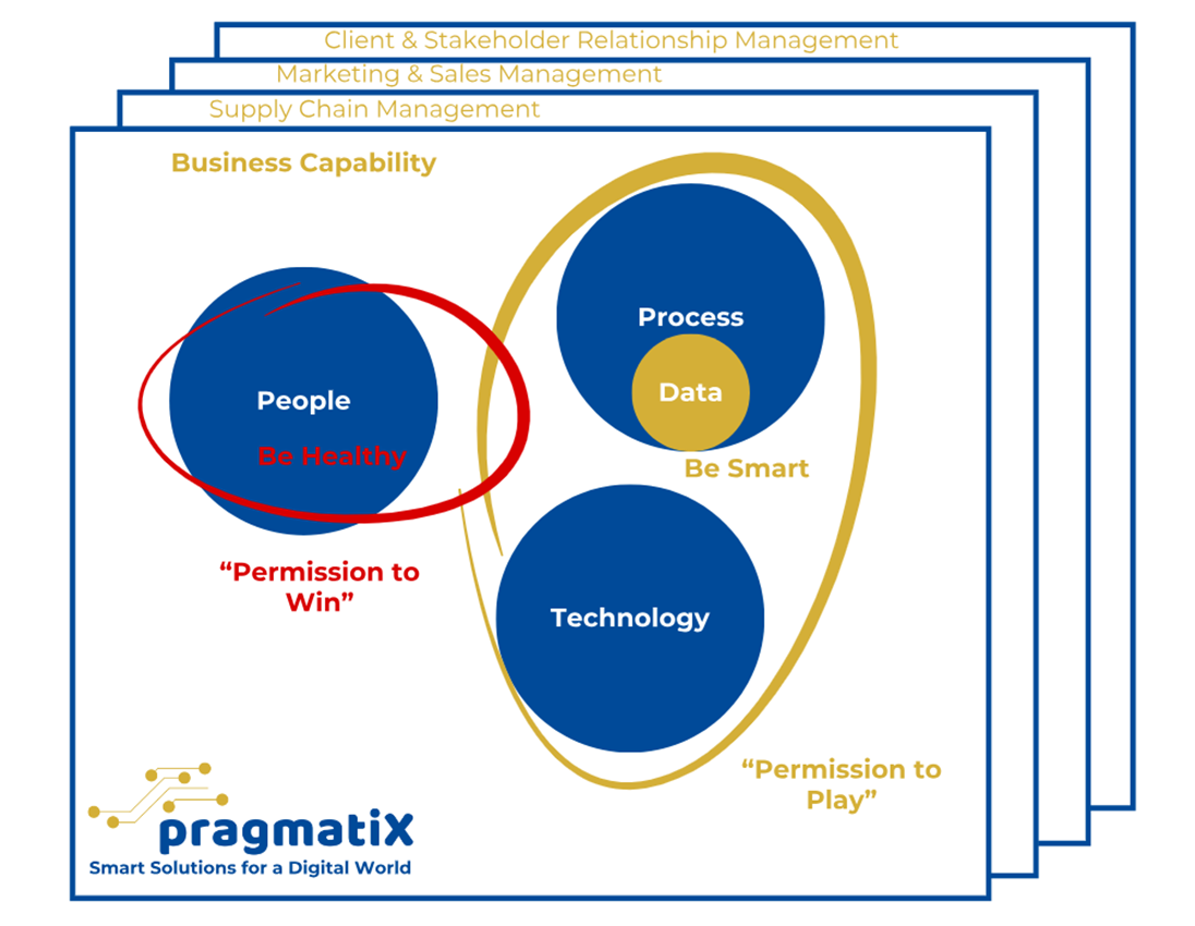 A modern, digital business thrives on a well-planned and cohesive alignment of people, processes (including data), and technology.